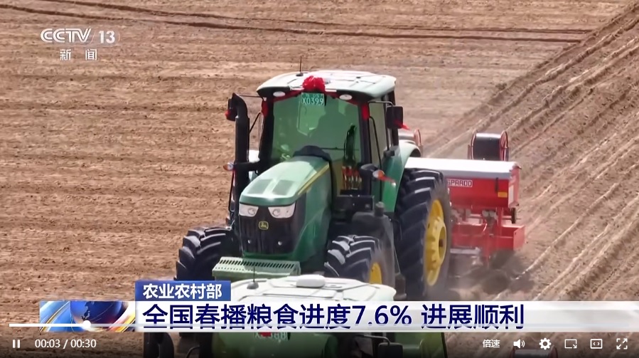 農(nóng)業(yè)農(nóng)村部最新農(nóng)情調(diào)度顯示,目前,全國春播糧食進(jìn)度7.6%。分作物看,早稻育秧過八成,進(jìn)度同比快2個百分點(diǎn),栽插過兩成,進(jìn)度略快于去年同期。中稻已育秧16.1%。春小麥已播27%,春玉米已播5.5%,薯類已播26.3%,春大豆已播2.6%。全國春播總體進(jìn)展順利。