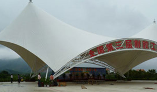6、光學性能,可設(shè)計為自然采光。普通薄膜材料對光的透射率約為0.05。半透膜對自然光的透射比可達0.25-0.3,白天可使用自然光,夜晚在膜內(nèi)光照的作用下發(fā)出自然柔和的光彩,令人陶醉,形成景觀效果。薄膜材料還可以過濾掉大部分紫外線,防止薄膜中的物體褪色。